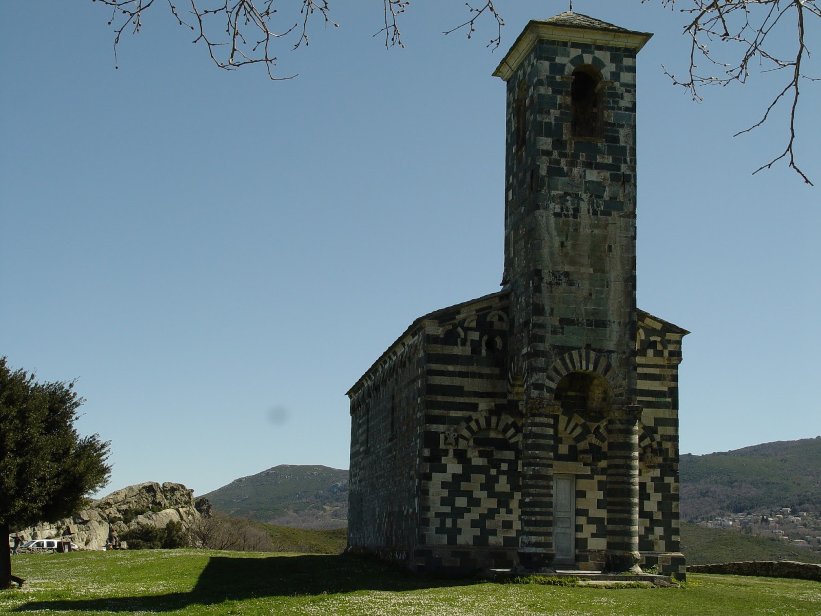 Nous continuons vers Murato et son église San Michèle isolée sur sa bute, église originale par la polychromie de ses murs.