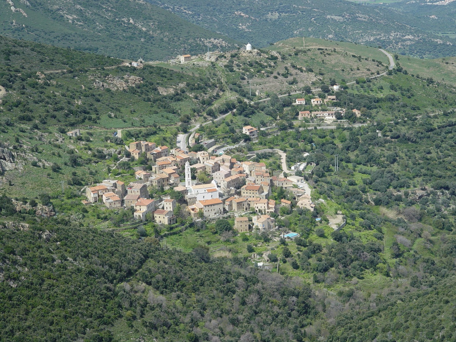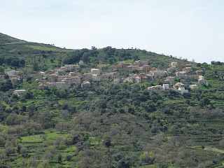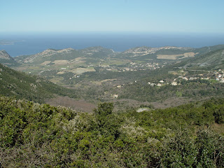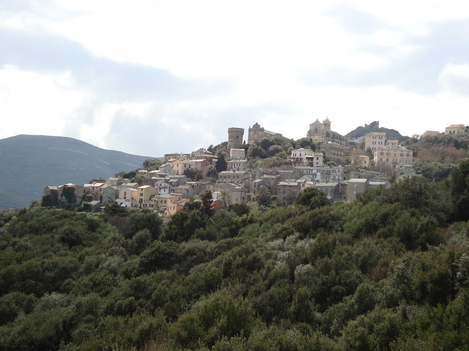Nous quittons Saint-Florent par la D81 puis au col de Teghime, arrêt photo. Nous prenons la D38 direction Oletta, village tout en hauteur mais risqué de rentrer avec sa voiture.