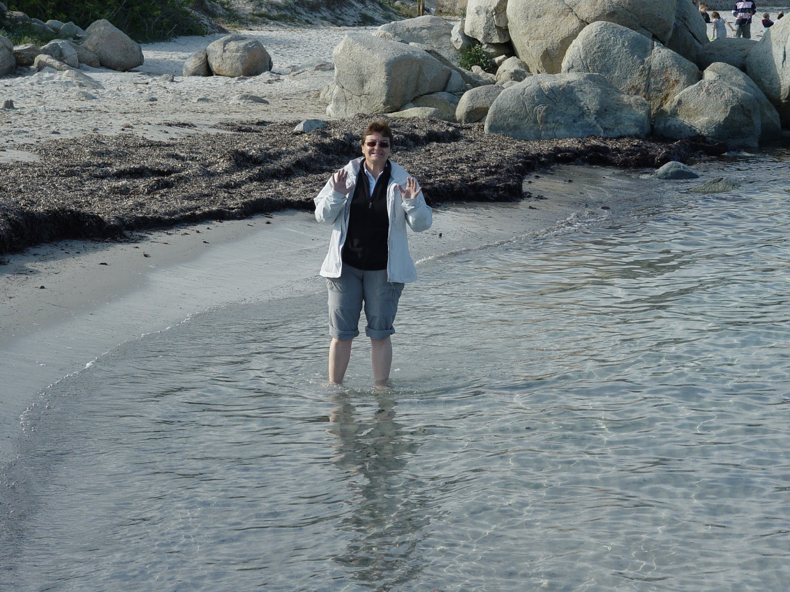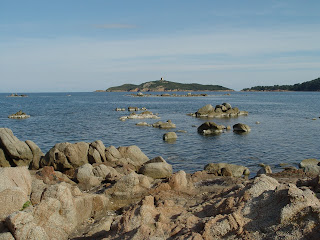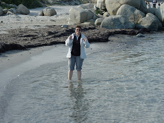 Promenade dans la ville et dans ses environs. Petit bain de pieds dans une eau bien fraiche à Pinarellu